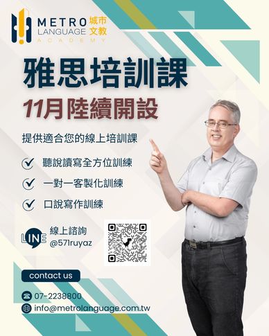 為回饋支持我們的考生,自2025/10/1 起凡報名「城市文教中心」Metro Language Academy 2025年10月、11月、12月的任一場雅思官方考試, 包括UKVI 的考生均可獲得價值$1200的雅思仿真一對一口說模擬考 (口說模擬+15分鐘的專業反饋),由前雅思考官Paul Ryan 親自執考。